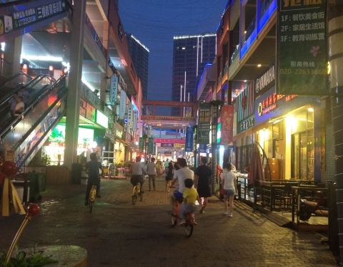 白天人很少的,晚上就比较多人,很多人晚上吃完饭都是喜欢来这里逛一下,吹吹风,旁边就是万达广场了...