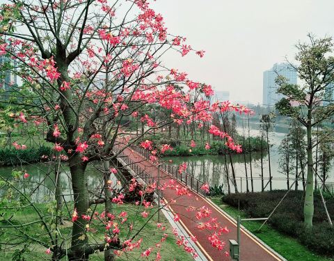 ...岸绿化管理得很好,每到下班的时候都可以看到很多人散步、休息、嘻闹什么的,是市民休闲的好去处之一