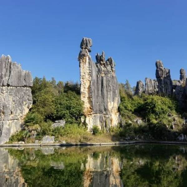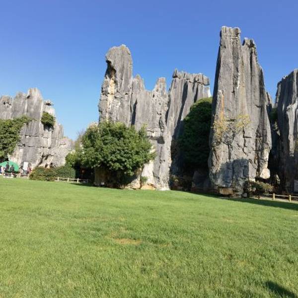 云南的石林似乎无人不知无人不晓,在昆明的郊外。从昆明市区打车来回三四百元。 第一次看到石林的时候非常震惊。我觉得所有人应该跟我感受是一样的,就是这个到底是真的还是假的? 经过一系列的研究确认,这个实实在在不是人工石林而是天然形成的。 天然形成的石头石柱石林实在太伟大了,无法想象的壮观和宏伟,照片根本拍不出它的气势和规模。立体的石柱排列成规则的形状和不规则的形状,有的像玉兔,有的像乌龟,还有像毛笔,亲眼看到的在平地上拔地而起的石林,所有人都会思索同一个问题,到底是怎么样的造山运动成就了如此壮观的场景?