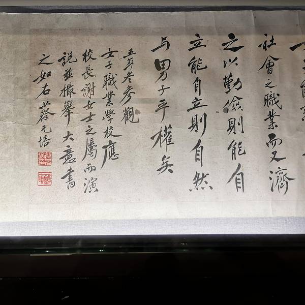 我围着这顶轿子转了一圈,都没看到“门”在哪里,最后不好意思的问旁边的工作人员,没想到她也是一知半解到的当天是星期天,又下雨,所以办理完入住,我们就去博物馆了。这应该是是我见过的博物馆里最不像博物馆的地方了。万工轿,又称“百子轿”,是一顶清末民初的宁波朱金木雕花轿,是浙江省博物馆十大馆藏之一,更...到的当天是星期天,又下雨,所以办理完入住,我们就去博物馆了。这应该是是我见过的博物馆里最不像博物馆的地方了。万工轿,又称“百子轿”,是一顶清末民初的宁波朱金木雕花轿,是浙江省博物馆十大馆藏之一,更是《国家宝藏》独占鳌头的藏品。一天为一工,万工轿要花费一个工人大概30年的时间,其上人物龙凤,神仙花鸟比比皆是,戏台上的人物可以轻轻活动好似真的在好戏开演,整个轿子金碧辉煌。它不属于任何一个家族,而是一家“聚成号”,用于出租。我围着这顶轿子转了一圈,都没看到“门”在哪里,最后不好意思的问旁边的工作人员,没想到她也是一知半解。后来查找资料才知道,这顶轿子要想坐进去,需要拆轿工把花板一片片拆下来。彩凤鸣岐,有近代琴学大师杨宗稷的三段鉴藏赞美铭于上,龙池腹腔内有正楷“大唐开元二年雷威制”题刻。此琴是杨宗稷“半百琴斋”中最珍爱的琴,并著录于《琴学丛书》。临去前中了《觉醒年代》的“毒”,正在二刷中,见到《新青年》刊物非常激动,陈独秀先生为新中国做出的努力与牺牲,不应该只是历史上短短的一笔,每一位先辈都是。蔡元培先生的亲笔 “女子能熟习有益社会之职业 而又济之以勤俭则能自立 能自立则自然与男子平权矣”战国越王者旨於睗剑。这把剑虽不如“天下第一剑”越王勾践剑,但二千多年历史仍能保存如此完好,也实属罕见。此剑为铜质,全长52.4cm,正面刻有:戉(越)王、背面刻有:者旨於睗的字样。据了解,者旨是诸暨,於睗是勾践儿子与夷,这把剑是勾践儿子越王与夷的剑。北宋彩塑泥菩萨立像。出土于浙江温州白象塔,佛像通高64厘米,形态毕肖,敷彩描金,精彩绝伦,极具绚烂之美,是彩塑的典范之作,是泥塑中的珍品。 展开