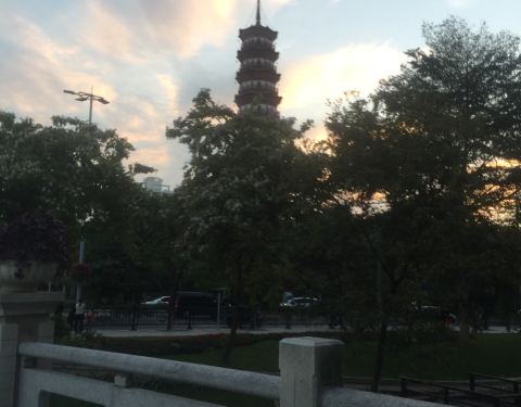赤岗塔是第一次路过, 没想到这边还有这样一个古塔。 傍晚夕阳下, 显得佛光普照啊, (..›ᴗ‹..) 挺美的。 已经几百年历史了吧, 属于明代晚期楼阁式砖塔风格的特色。 (*˘︶˘人)♡* 不要门票的, 据说晚上更是好看, 有六套灯光系统点缀整个塔身。