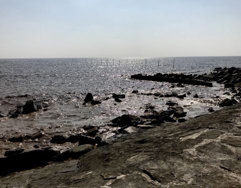 十月初的早餐,秋高气爽,万里无云,漫步东海之滨,独游。海滩上可以找到螃蟹和弹涂鱼。