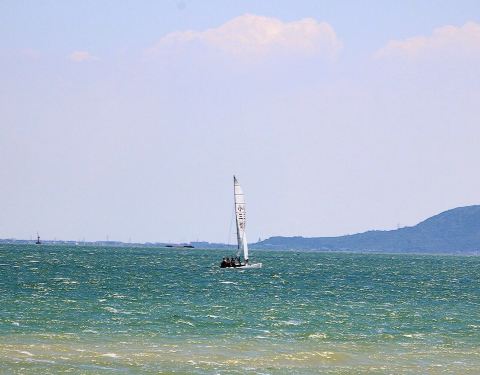 有好几个出入口,公园很大,在新天地码头处可以看到一望无际的太湖,幸运的当天看到了有人驾驶帆船,好酷