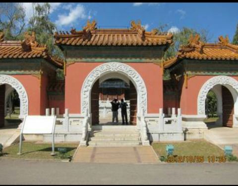 北京万春园——是1999年为昆明世博会而建的,园门仿照了北京天坛皇穹宇前的三座门,比例与实际相...