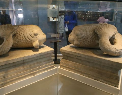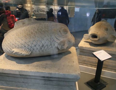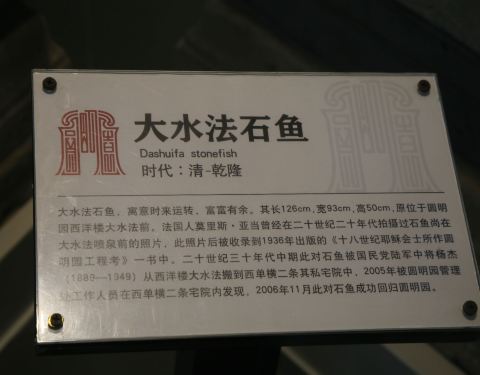 展览馆里的两条鱼很有特色啊,被保护的很好,展览馆里可以更仔细的链接圆明园的历史,被火烧的整个经过看了以后还是很有感触的。