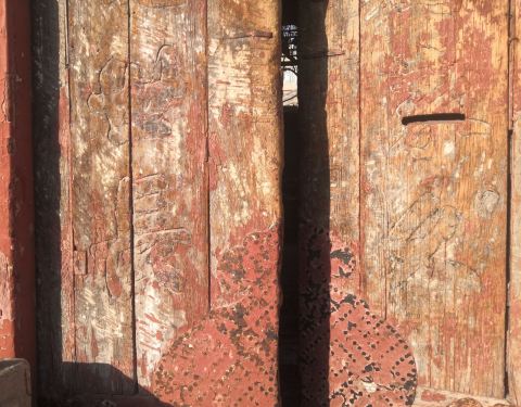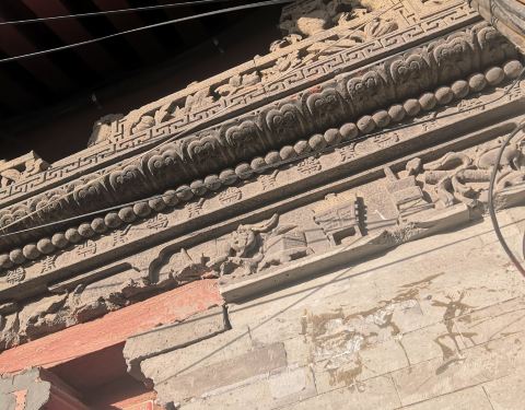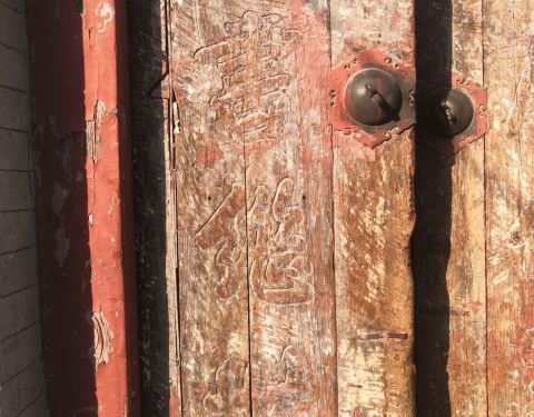 门前原有一对石狮。进入大门,影壁迎面而立