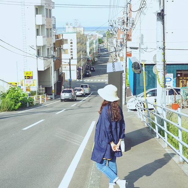 站在坂道高处,望向远远的海...船见坂深藏在小樽市的一隅,远离了喧嚣的游客,是一条能看见船的“坂道”。午休后,趁着阳光正好,我们从酒店出发,向JR 小樽 站的方向走去船见坂,这个电影《情书》的经典取景地。
