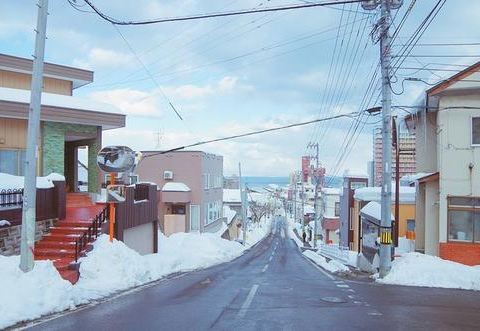 船见坂是深藏在小樽市一隅的坡道,也是电影《情书》的取景地之一。这里不仅远离喧嚣的游客,站在地势高处还能眺望远方漂亮的海面,犹如电影中的唯美场景。 电影《情书》中有一幕,在悦耳的引擎声中,邮递员骑着电单车上斜坡送信,该斜坡正是船见坂。由于《情书》的名气,如今这里也成为了不少电视广告的取景地点。抛开电影的影响,这条坡道本身的风景也很不错,不仅可以拍到列车经过的铁道,在雪后的晴天还能拍出屋顶堆雪的街景。