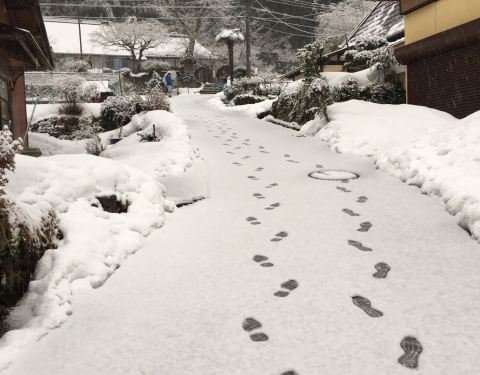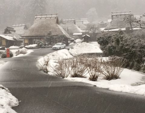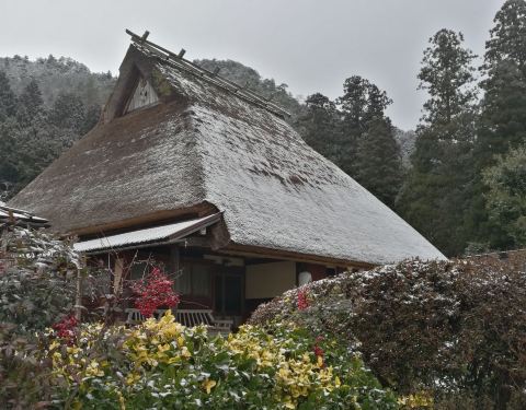 我们住在离茅屋村乘车20分钟的茅屋改造的酒店里,祈祷下雪能看到美山合掌屋的雪景。天公作美,还是下了些小雪,得以欣赏如水墨画般的美山,自然宁静。