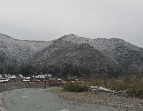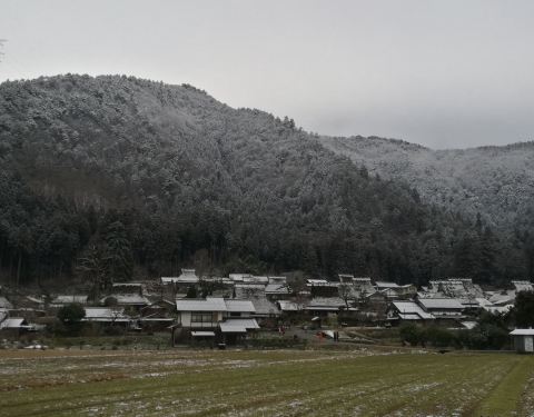 天公作美,还是下了些小雪,得以欣赏如水墨画般的美山,自然宁静