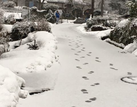 天公作美,还是下了些小雪,得以欣赏如水墨画般的美山,自然宁静我们住在离茅屋村乘车20分钟的茅屋改造的酒店里,祈祷下雪能看到美山合掌屋的雪景。天公作美,还是下了些小雪,得以欣赏如水墨画般的美山,自然宁静。