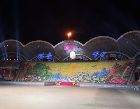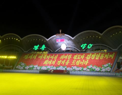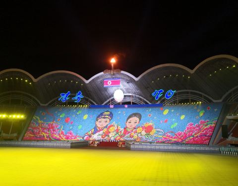 规模空前巨大的场地,可以想象朝鲜著名的团体操表演是何等的盛况!