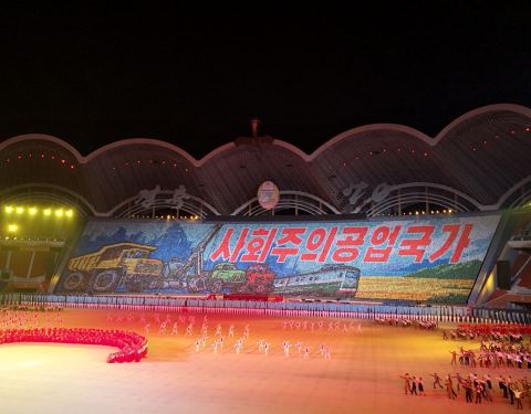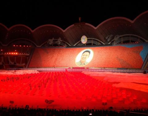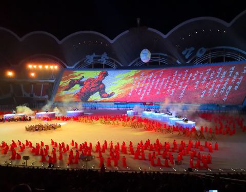 很幸运可以看到朝鲜的大型团体操表演!这个世界上或许没有哪个国家可以做到像朝鲜一样,几万个人齐心协力地做好一件事了。整个表演持续了快两个小时。偌大的体育场座无虚席,外国游客都是被安排在很好的位置。观看朝鲜的改革以及历史进程。一般这个表演会在8-10月举行,并不是每天都有这样的表演的。
