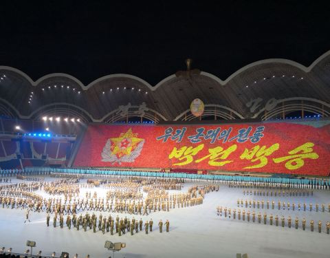 很幸运可以看到朝鲜的大型团体操表演!这个世界上或许没有哪个国家可以做到像朝鲜一样,几万个人齐心协力地做好一件事了。整个表演持续了快两个小时。偌大的体育场座无虚席,外国游客都是被安排在很好的位置。观...