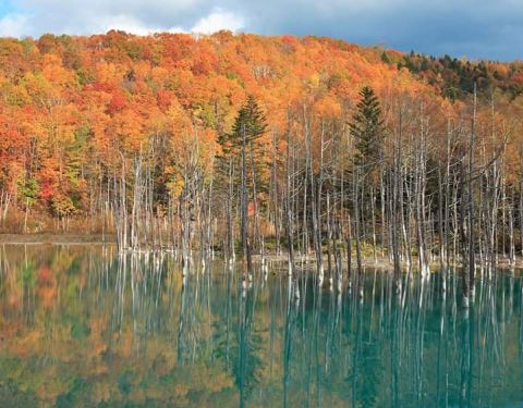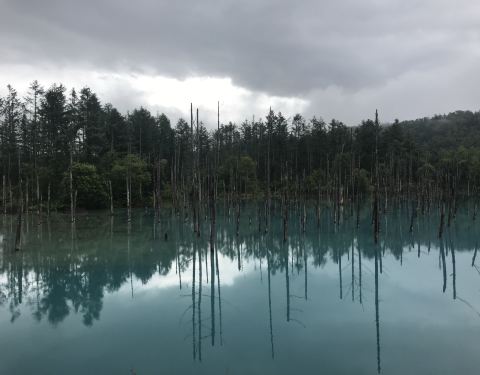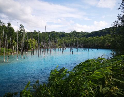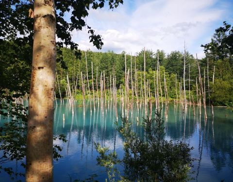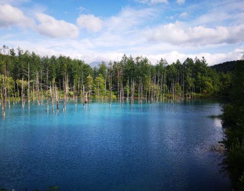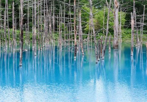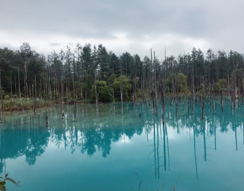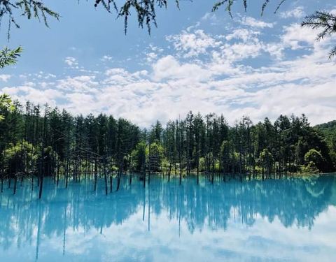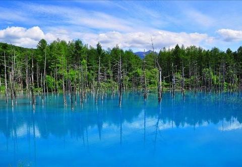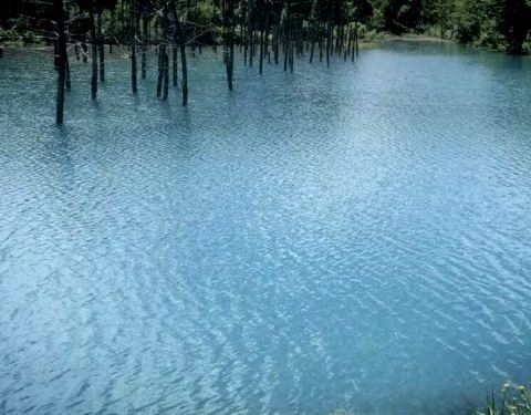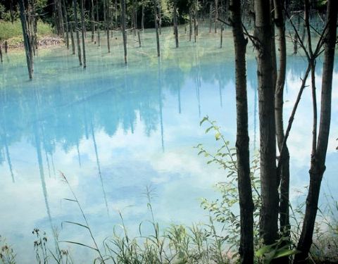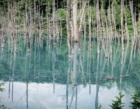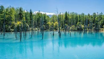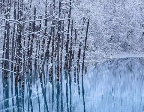 北海道有一处地方叫做美瑛的地方,而美瑛有一处地方叫做青池,它美得让人心醉。青池是十胜岳火山喷发后,偶然形成的湖泊。到了冬天枯树与蓝色的湖水相互辉映,洋溢着梦幻般的气息。