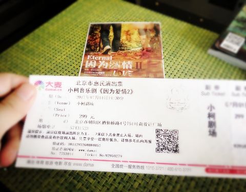 去和媳妇看的因为爱情2,虽然剧场有点小,但是整个剧演的真的不错,演员演的挺到位的,里面的歌还挺好听的。哈哈,就是离我家太远了,我住丰台区