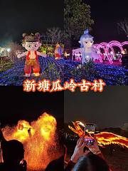 瓜岭古村作为新塘一个著名景点,近些年游客是越来越多了,还记得几年前来停车免费人烟稀少,如今商业也慢慢做起来了,越做越好啦😘 三月份搞的这个旅游节活动说实话还蛮好的,弄了几十个摊位做小吃,然后还有免费的烟花、打铁花、唱歌等表演,吃喝玩乐玩乐一应俱全,现场还有拍卖字画的活动😛 活动主要集中在广场这里,如果不知道地方可以问停车场的安保,或者跟着人流走过去就到啦,不管是三俩好友过来玩玩或者是遛娃都是蛮推荐的,吃的都不算贵,天南地北的都有,里面好像还有电商直播基地?古村多方面发展总是好事👍 门口超大的哪吒和敖丙值得一看❗