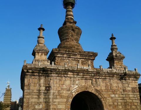 妙湛寺双塔矗立在妙湛寺山门之前,建于元朝,东西各一,东塔是原物,西塔1833年毁于地震,199...