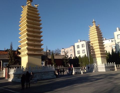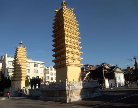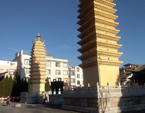 立于昆明官渡古镇妙湛寺前,是两座建于元代的密檐转塔,共计十三层,其中东塔为原件,西塔在清光绪年间毁于地震,现在的西塔是解放后按原貌重修的。