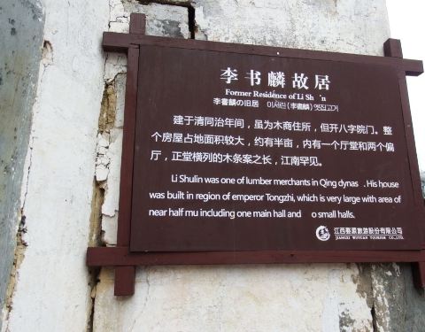 李书麟故居在李坑村,是李坑当地的一个富有的商人在清朝期间建成的民宅一座,他家原来属于当地的土豪,因此对于建筑的讲究也可以在这座宅子的细节上看出来,他家的门是很少见的八字门,也有四个天井,可以通风采光,还有他家庭照壁也别具一格。