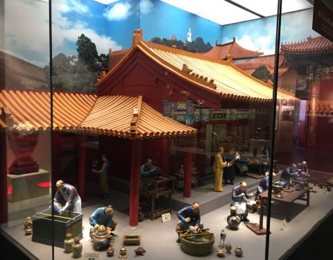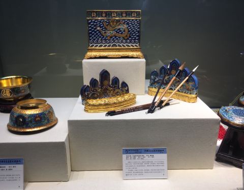 “景泰蓝,又名“铜胎掐丝珐琅”,是一种瓷铜结合的独特工艺品,制造历史可追溯到元朝。明代景泰年间(1450年-1456年)最为盛行,又因当时多用蓝色,故名景泰蓝。博物馆里面有专门的人制作景泰蓝,也有售卖的。