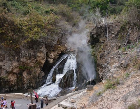 ...,热海景区是腾冲最有名的景点之一,地热温泉非常多,水温也非常高,蛤蟆嘴在珍珠泉旁边,热气腾腾的