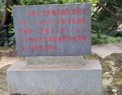 ...与中国船政博物馆后方有一座小山叫马限山,很多游客都不会走上去,但原来深藏着很多古建筑和炮台遗址马江海战纪念馆与中国船政博物馆后方有一座小山叫马限山,很多游客都不会走上去,但原来深藏着很多古建筑和炮台遗址。昭忠寺后有一个并不显眼的指示牌,沿小径拾阶而上,快到山顶时在树荫下有一块很宽大的平台,...马江海战纪念馆与中国船政博物馆后方有一座小山叫马限山,很多游客都不会走上去,但原来深藏着很多古建筑和炮台遗址。昭忠寺后有一个并不显眼的指示牌,沿小径拾阶而上,快到山顶时在树荫下有一块很宽大的平台,这便是始建于1868年,在中法马江海战中曾起到阻击法军登陆作用的中坡炮台了。不过现在所看到的大炮,都是后来的修复品,缺乏沧桑感,倒是立碑处凹凸不平的山石,有种当年遭受炮火洗礼的感觉。 展开 2019-08-31 09:47