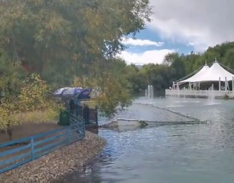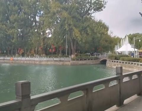 ...殿组成,由石桥相连,去的时候正好是淡季,工人们正在清理水池,夏季湖水充盈,有很多水禽在里面畅游