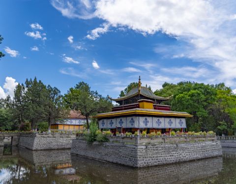 拉萨的湖心宫位于夏宫罗布林卡之内,是一个有江南园林色彩的建筑物,其四周全是水,在水中央建了一个...