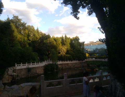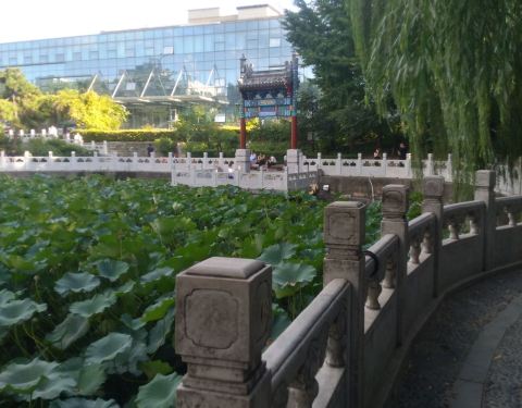 棍贝子府座落在积水潭医院(新街口院区)里——其实应该是,积水潭医院占用了当时的棍贝子府。现在医院里现存的荷花池、假山、凉亭等等是原棍贝子府的后花园,荷花池水引自什刹海西海。这应该是北京的医院住院部里景色最宜人的了。 北出积水潭医院后门,可以去什刹海西海,沿着西海西沿走,可通汇通祠,最后到达积水潭地铁站。 什刹海西海,是什刹海三海里人最少的,想看景儿的可以来这边。