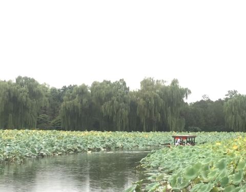 这是位于圆明园的景区内,在通往遗址景区的路上,不需要额外购票,它前面是一片荷花池,是当年皇帝休闲的个小岛,原来没有桥,都是靠船摆渡过去,后来人为建了条铁桥连通过去,但是目前看来也是没有通的,都被荷花覆盖