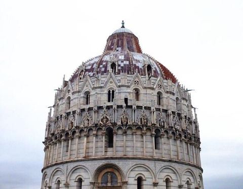 来奇蹟广场一定会看到这个很漂亮的大理石圆顶,跟佛罗伦斯的百花大教堂圆顶很类似,只是颜色不同,不过比萨洗礼堂是奇蹟广场上第二古老建筑,同时也是义大利最大的一座洗礼堂。