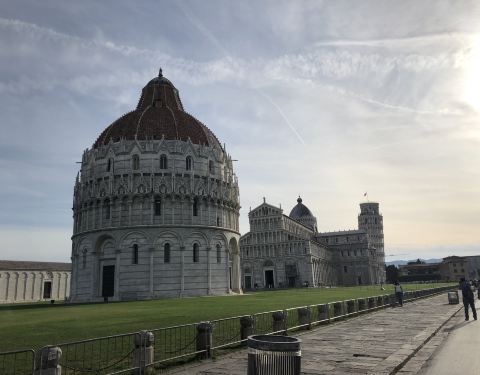 洗礼堂和比萨斜塔还有主教堂矗立在奇迹广场上,亲眼看到非常震撼,值得一去。非常庞大的一个建筑