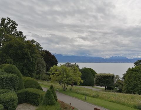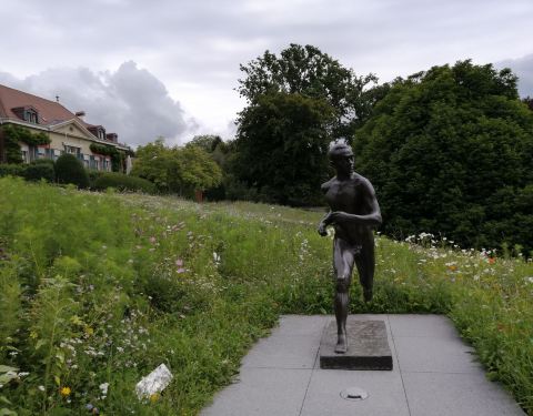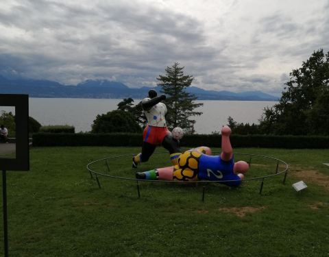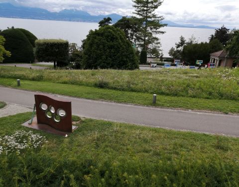 公园在莱蒙湖附近,公园花艳草碧,加上公园草坪上的体育雕塑,体现了更快,更高,更强的奥运精神
