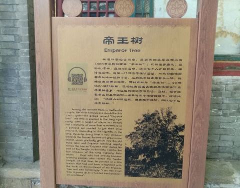 清乾隆皇帝御封为“帝王树”,是潭柘寺千年银杏。“‘帝王树’高达24多米,直径4米有余,六、七个人才能合抱,遮阴面积600多平方米,推断此树至今约有1300多年了