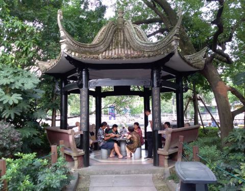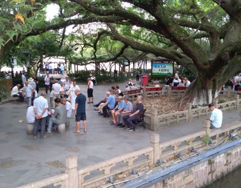 没有太多趣味。只是适合老年人聚会,聊聊天,打打麻将,下下象棋,打打纸牌。园中有棵树,超级繁茂,感觉生长了几百年,可能上千年。