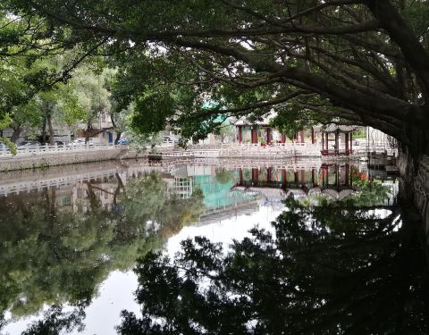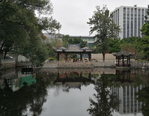 在住的酒店附近,找卤水店时经过,门口写着“冶山春秋园”。进去就是一个大池子,标识为“欧冶池”。走了一圈并没有看到山,老人家早上都到这里来晨练。欧冶池,俗称剑池,福州市文物保护单位,位于福建省福州市鼓楼区鼓东街道中山路冶山北麓。相传为春秋时期越王允常聘欧冶子铸剑处。唐元和年间置剑院,浚池时出土有铜刀、刀环等遗物。宋熙宁年间郡守程师孟建欧冶亭,并作《欧冶亭序》。元代,又建三皇庙、五龙亭。至明弘治间,池已严重淤塞,仅存半亩方塘,且围入贡院。清道光八年(1828年)重浚,池面扩充几倍。光绪十八年(1892年)立欧冶子铸剑古迹碑。民国二十一年(1932年),闽侯县名胜古迹保存会重浚之,并修复欧冶亭、凌云台、喜雨堂、剑池院等。1982年,福建省财政厅拨款重浚,池岸砌石,池内泉涌如潮;还在池北建剑光亭、石舫、池心亭等仿古建筑。池旁现尚存元泰定五年(1328年)石碑一方。欧冶池可追溯历史久远,被认为是福建省最古老的一口池。