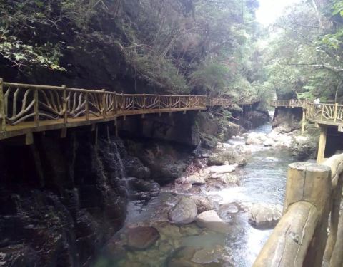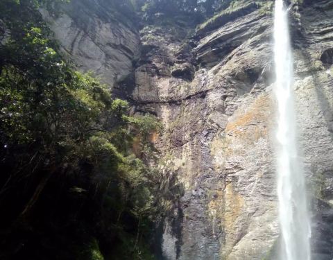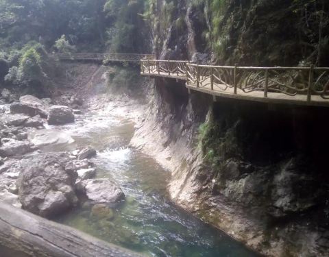 名副其实,只要有些太阳,就有彩虹(第二幅图),明明三面绝壁,却异常清凉,水雾扑在身上非常爽。气势宏伟,没白来。本身道路很多分支死路通往溪边,可近距离接触小溪,但是全部封锁了,只剩下通往瀑布下的死路了。