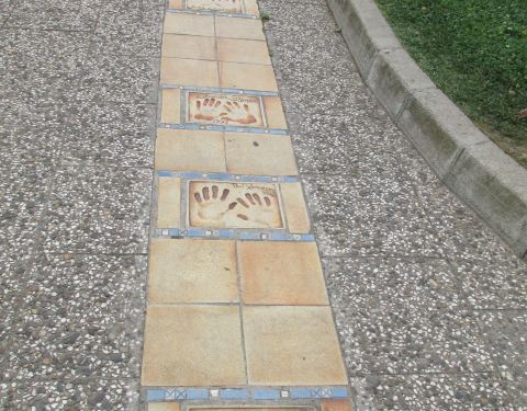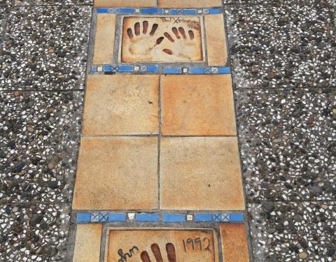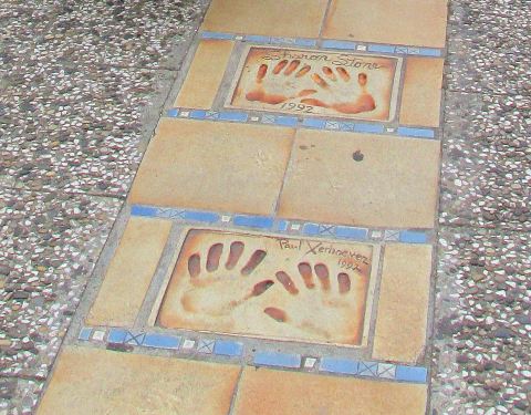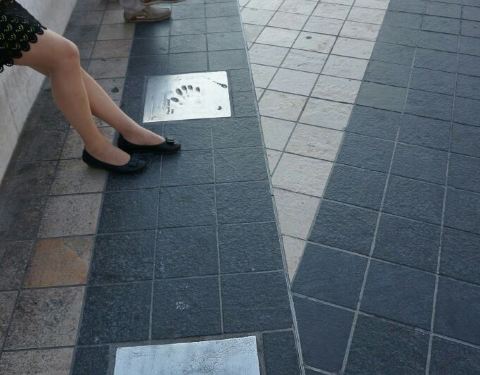 和电影宫一样气势和名气不成正比、让人感到落差巨大的地方。星光大道就在电影宫周围,但和香港的不同,香港那些手印地砖位置和大小都比较醒目,这里的手印不细看还真会错过。就贴在墙边不远,看上去就和装饰地砖差不多,要不是我纳闷为什么没看见手印所以仔细看了一下,还真差点以为就是普通的花纹地砖了。