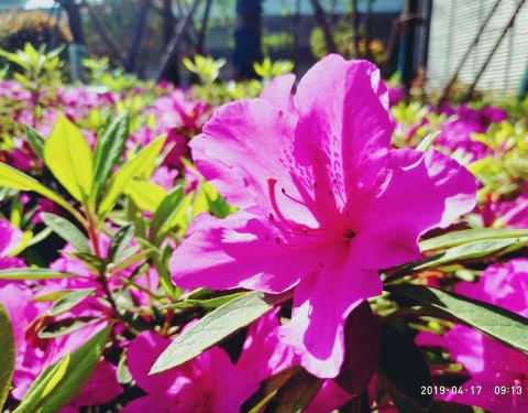 ...了,也是杜鹃盛开的季节,今天看到了两种颜色的杜鹃,大红色和桃红色,一个花朵大一些,不过都很漂亮