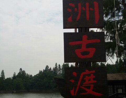 在落雁景区里面,建在以前的古渡口附近,这里有仿古船和竹筏供游人拍照,也有快艇供大家游湖使用