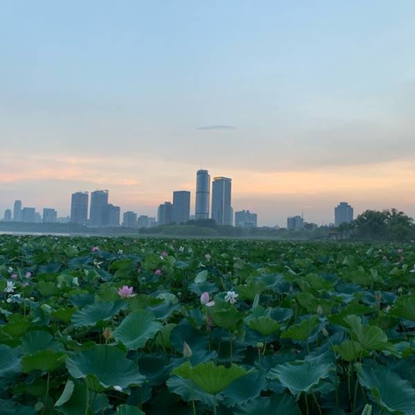 玄武湖畔 雨后漫步傍晚的玄武湖畔,荷风轻盈,蛙鸣声脆,沿湖游走,好不惬意