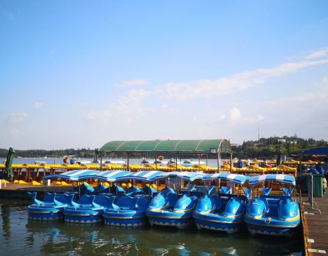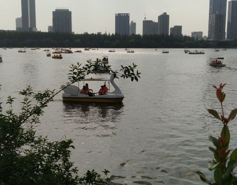 湖中的风景不错。带娃选择坐新船,很灵敏,动力也很大,六月初在湖中间还是很凉快的四人的小船新船130一个小时,旧船120一个小时。湖中的风景不错。几个片区不联通。带娃选择坐新船,很灵敏,动力也很大,六月初在湖中间还是很凉快的!