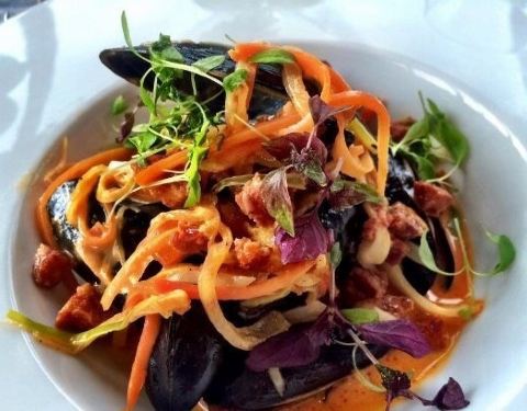 挺不错的一家餐厅,最值得的地方就是它位于电视塔楼顶,可以一边用餐一边眺望市区,还有两款特价125克朗的午餐(鸡肉和鱼肉二选一),在这种地方也算是很实惠了,不过说实话,我点的鸡肉并没有多么好吃,朋友说鱼肉还是不错的。餐厅离市中心有些远,坐69路公交车可以到达,沿途还路过我们的大使馆,记得需要提前预定桌位的。另外坐他们的楼梯如果不是预定了餐位用餐是需要花钱的哦~