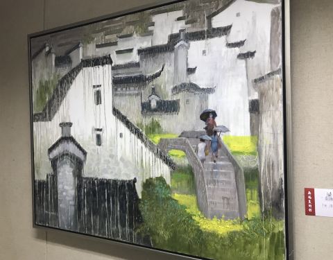 无锡美术馆正在进行“美丽无锡纪念改革开放40周年美术作品展》。展馆2层,多为油画,且满是江南水乡的烟雨朦胧。白墙黑瓦的民居、运河上的船只、草长莺飞的三月,都在画里复活了。