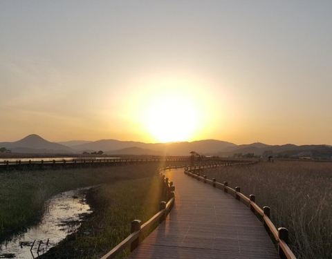 顺天湾自然生态公园是一片很大的湿地,从龙山天文台看日落是值得远足的别忘了带上驱蚊剂的走回来,一旦太阳下山,蚊子和蠓攻击游客的,秋天的时候最漂亮,整个芦苇荡是金黄色的,夏季还能抓小螃蟹