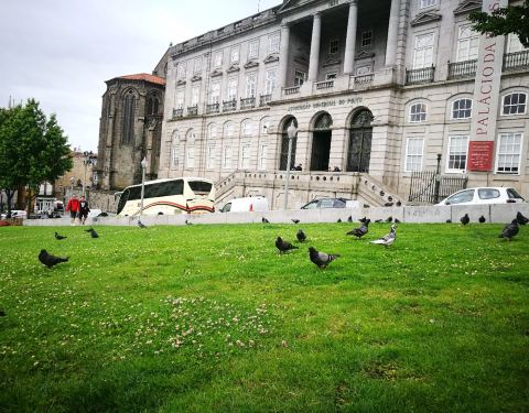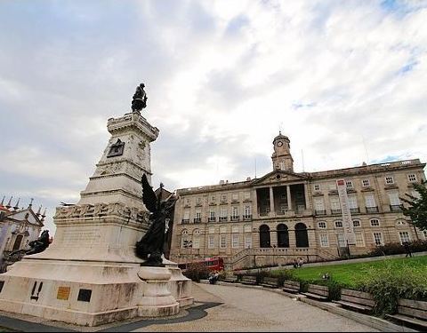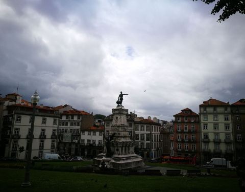 慢慢的沿着有点坡度的波尔图小巷闲逛,一路参观了波尔图证劵交易所宫和亨利王子广场。 波尔图证券所宫的正大门对面就是亨利广场。
