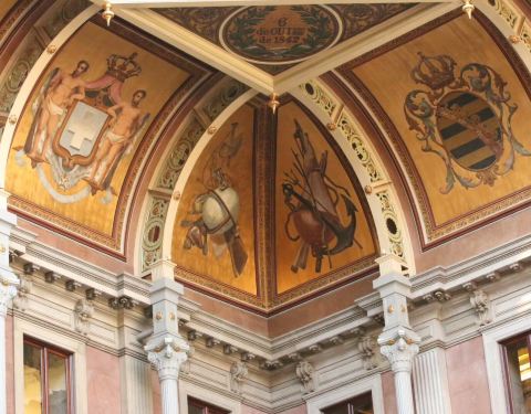 波尔图证券交易所宫是一处有着两百年历史的股票交易市场。可见当时这里是多么的富有,多么的辉煌波尔图证券交易所宫是一处有着两百年历史的股票交易市场。交易所金碧辉煌,有着铂金的屋顶,鎏金的立柱,精美的壁画,仿佛置身宫殿一般。可见当时这里是多么的富有,多么的辉煌。