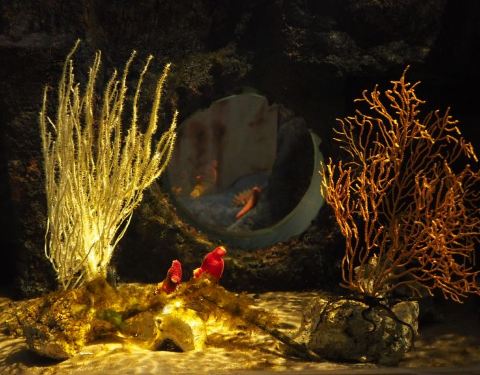 这个坐落在一个游乐场旁边,比较一般,海洋生物种类一般,不是很多