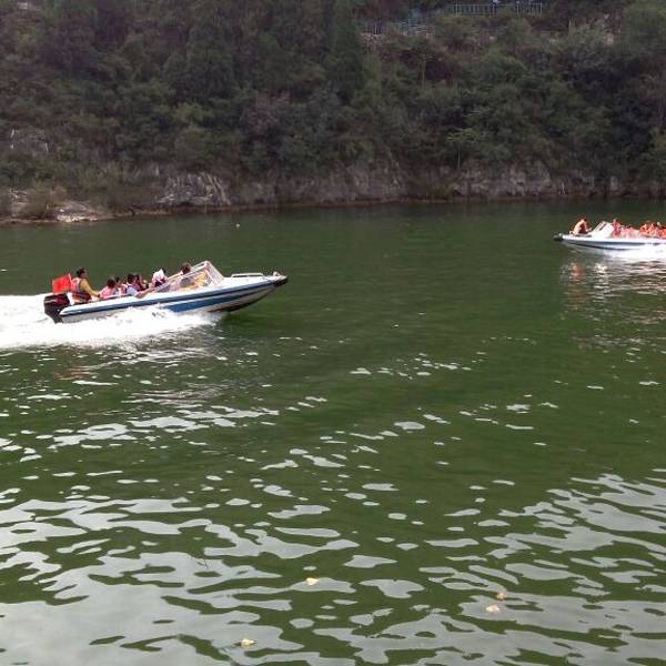 平坦快捷的景区道路、醒目的指示牌引领我们直达景区大门,到售票区很方便的换取了5套套票【全部是赠票呀!】,快艇、画舫、高空滑水、游乐场、清澈见底的分区游泳池......,绝对物有所值! 中午在景区的农家乐用餐,干净卫生,服务周到,价格实惠,做的木火熬鱼味道鲜美! 提几点建议:1、加强景区管理,亟待提高服务水平,上下船拥挤,缺乏引导、没有秩序。 2、画舫游船一定有核定载客数,不能盲目上人,出现颠覆,后悔莫及。 3、很好的景点,一定注意保护好水资源,村民、饭店乱排废水会导致灾难性的水源污染后果。 4、高空滑水的滑板可以采取定向滑轮的运输方式,省时省力以满足游客需求。 5、淋雨增加太阳能热水,彰显人性化服务。 6、加强外围宣传,扩大景区规模。